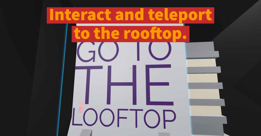 The central building has a gimmick that allows you to teleport to the roof by interacting with it.